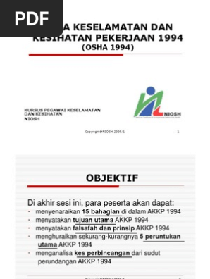 Akta Keselamatan Amp Kesihatan Pekerjaan 1994 Akta 514 Osha
