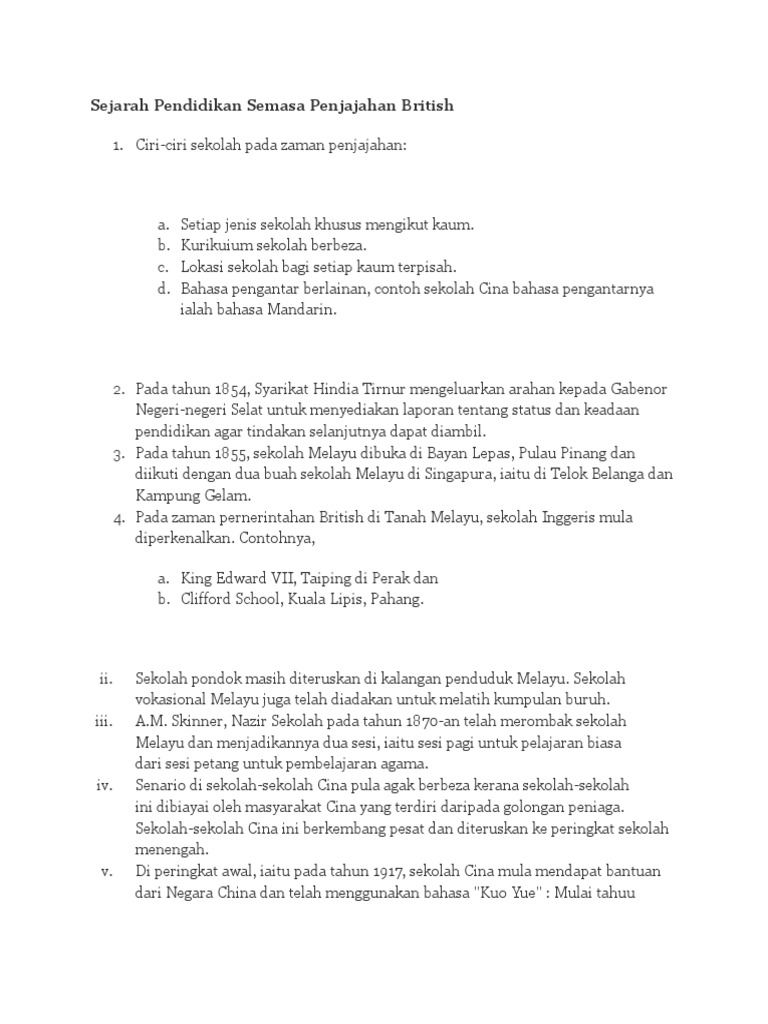 Ciri Ciri Sistem Pendidikan Di Negara Kita Sewaktu Penjajahan British Marcusctz